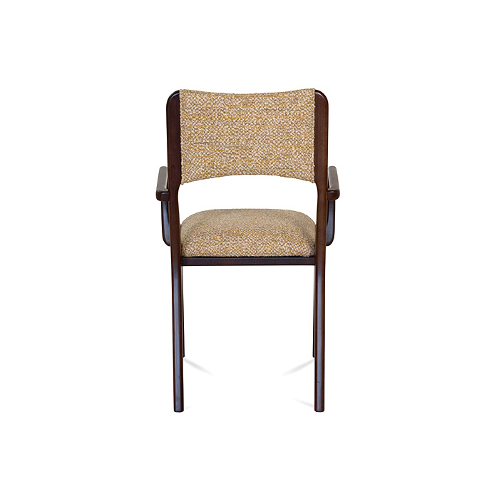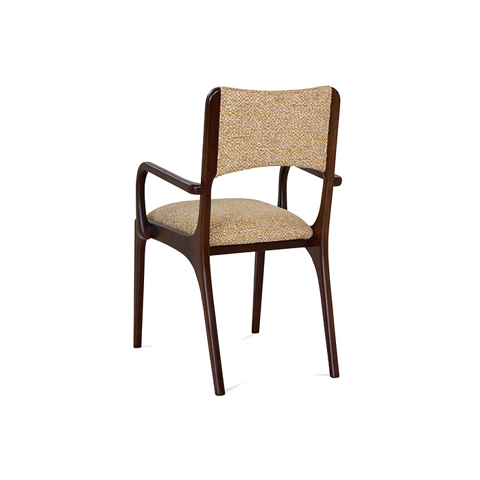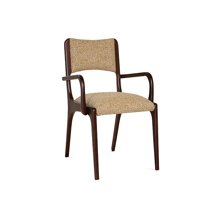 Mabel is born as a contemporary evolution of the iconic Kelly chair, reinterpreting its design with a lightened yet equally enveloping backrest. Produced in beech wood and poplar plywood with artisan craftsmanship, Mabel represents a refined balance between Italian design tradition and formal innovation. Its contemporary silhouette makes it suitable for design dining rooms, contract spaces and mid-to-high residential environments. Available as chair and armchair with armrests, customisable in all Sièdo wood finishes and upholstery samples.