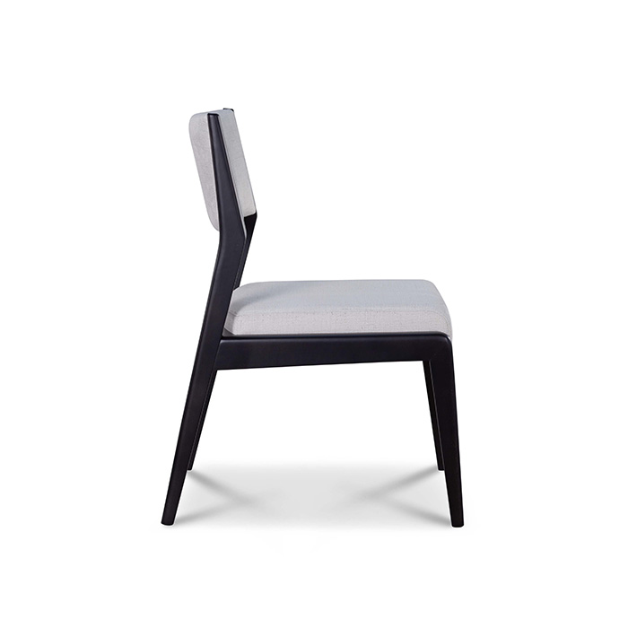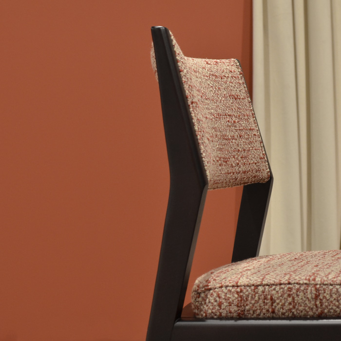 Diana is a beech wood chair with bold, sculpted architectural lines, designed to combine aesthetics and ergonomics without compromise. The beech and poplar plywood structure ensures strength and lightness; the soft high-density polyurethane upholstery provides support and extended comfort. Ideal for design dining rooms, meeting spaces and contract environments — Diana meets the needs of those seeking a strong-character Italian chair with a recognisable identity. Available as chair and armchair with armrests, customisable in fabric or leather and in all Sièdo wood finishes.