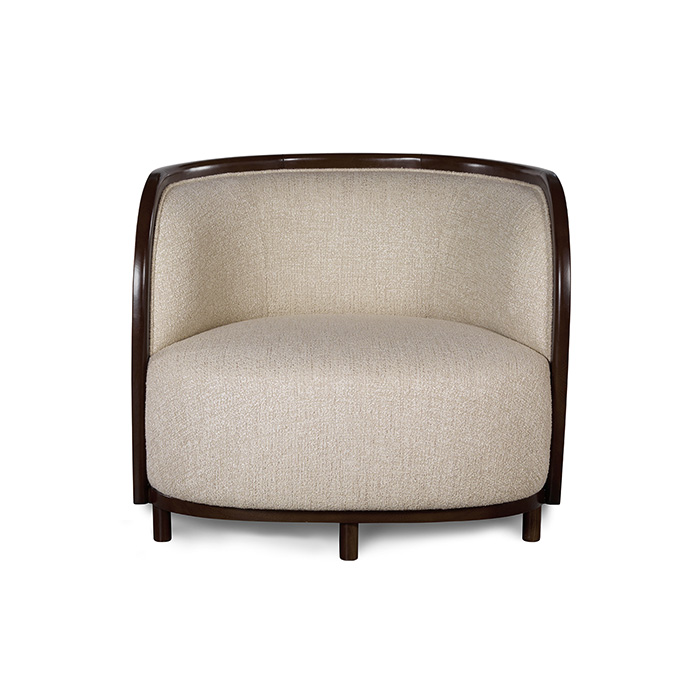Astrid Lounge, poltrona in frassino massello spazzolato a mano. Schienale curvato avvolgente, ideale in coppia per angolo conversazione. Made in Italy.