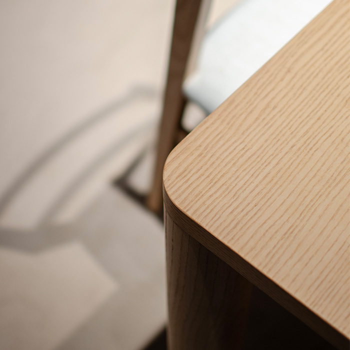 Diana, capotavola in legno di faggio con linee architettoniche decise. Design italiano ergonomico.