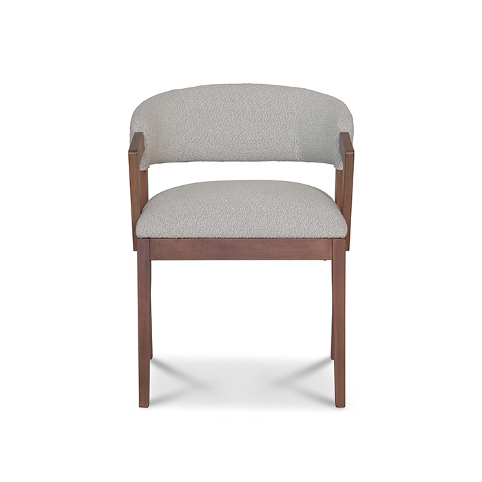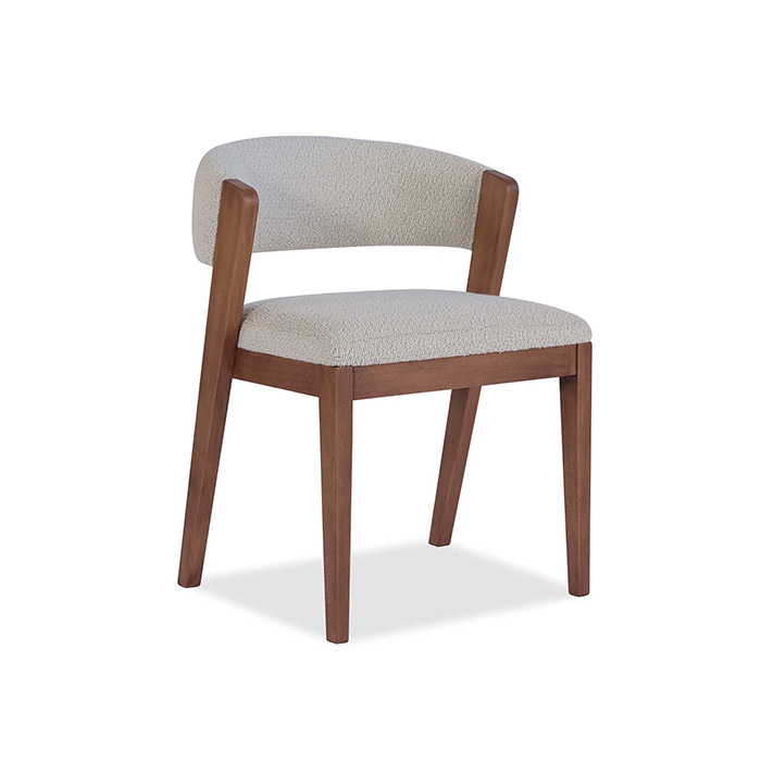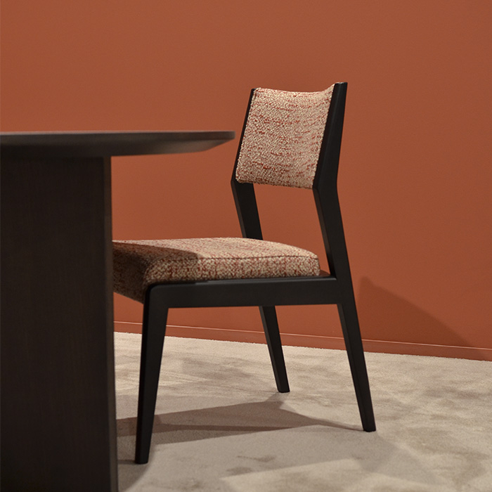 Petra, sedia imbottita in legno di faggio con schienale avvolgente ad alto comfort. Design italiano, ideale per sala da pranzo e angolo lettura.