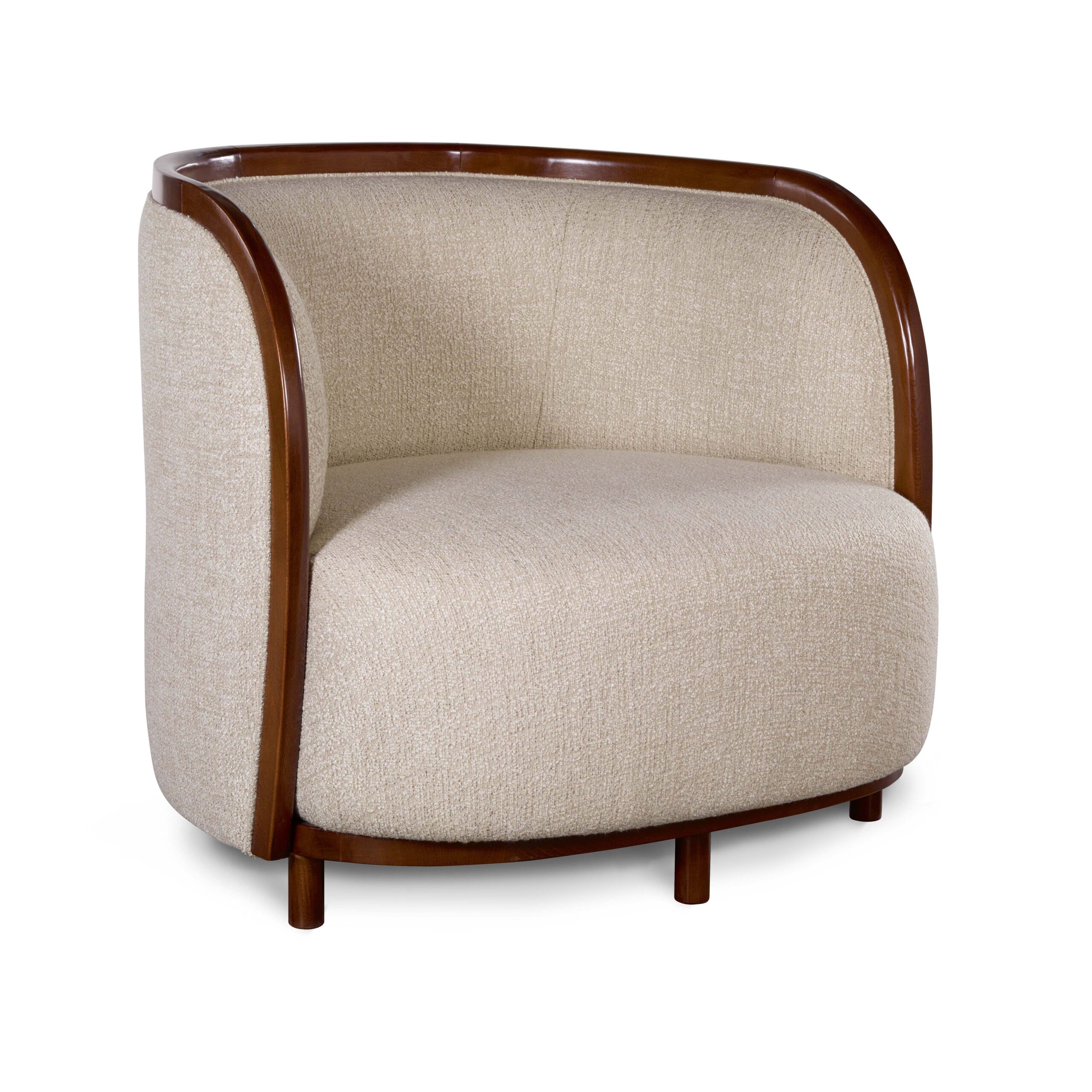 Poltrona con struttura in faggio e multistrato di pioppo.