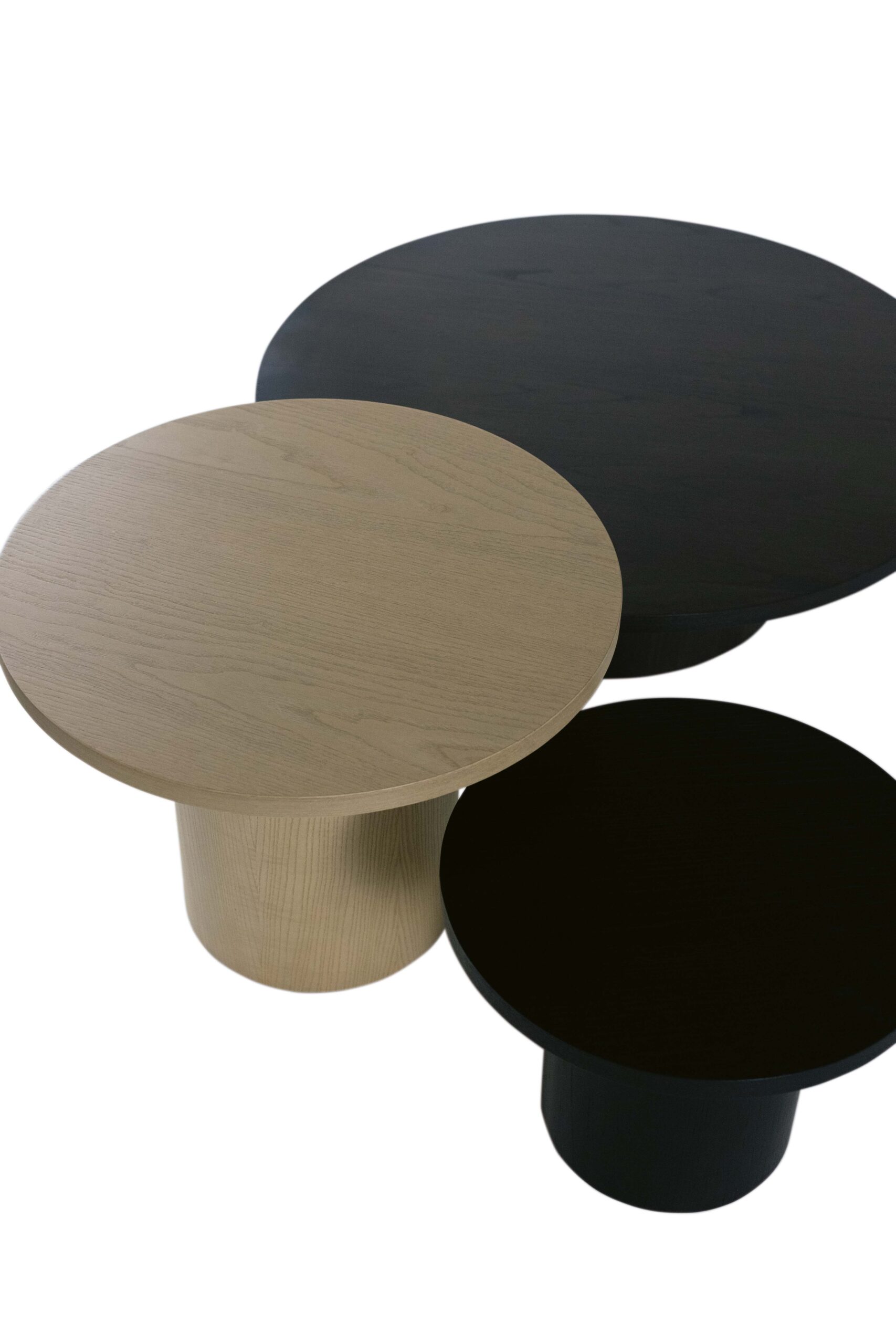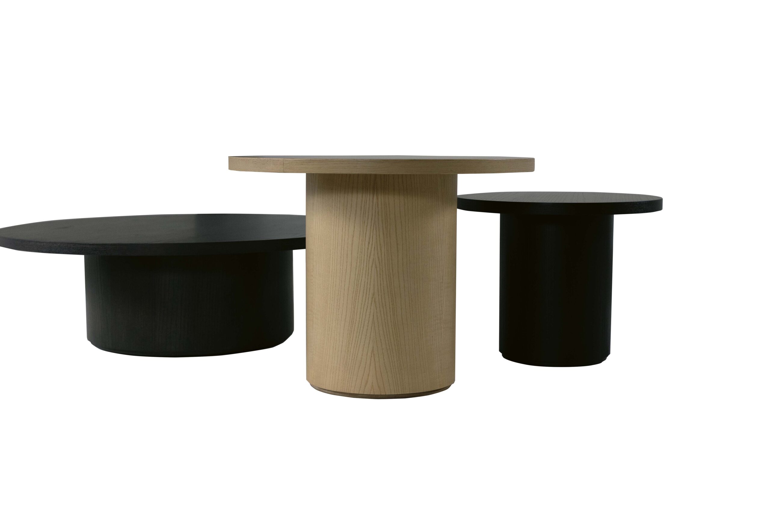Tavolino da salotto con top e base impiallacciata in frassino spazzolato a mano.