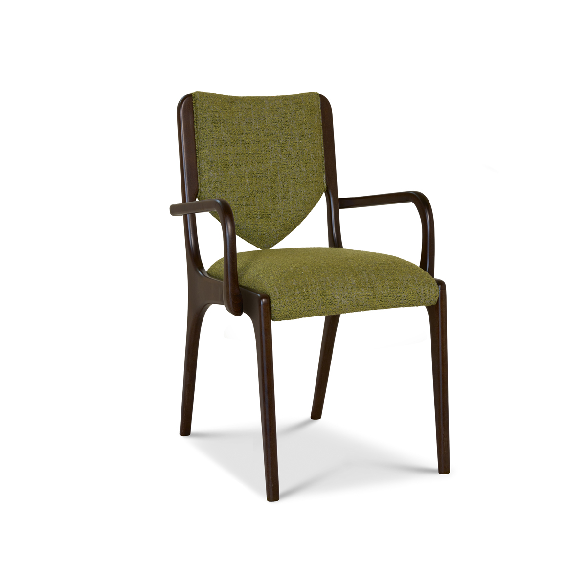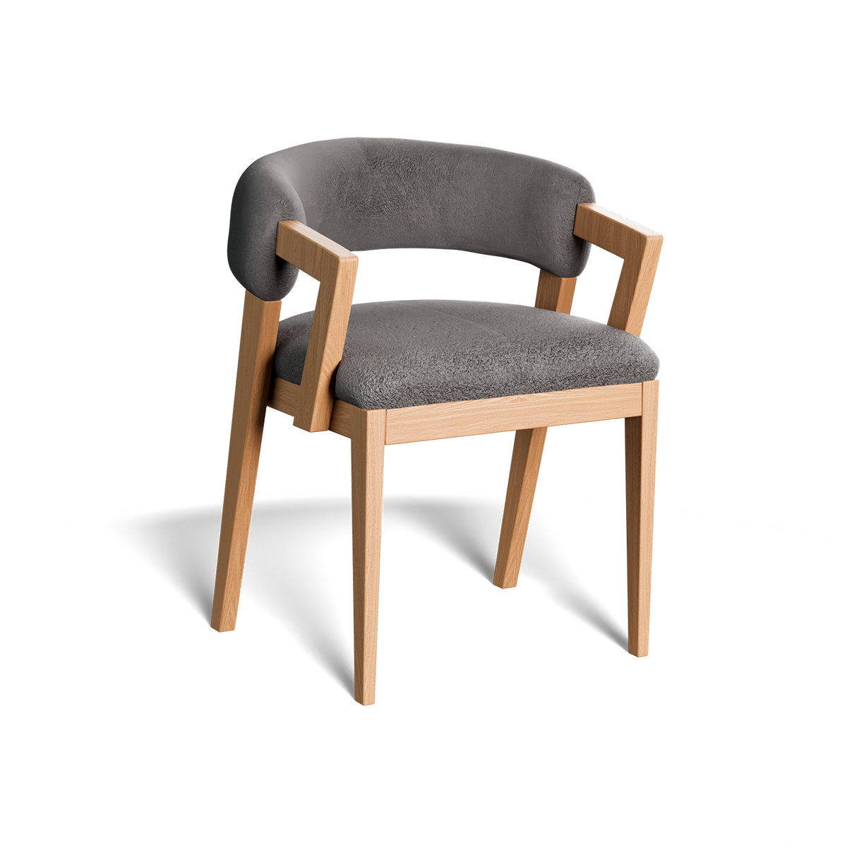 Sedia con braccioli con struttura in legno di faggio e multistrato di pioppo.